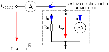 Vycházíme ze známých údajů o použitém měřícím systému U0 a I0. Pomocí změny napětí zdroje a rezistoru R nastavíme proud zkušebního obvodu. Pozor! Musí být dimenzovaný na potřebný výkon.