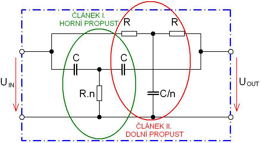 Jedná se o 2 RC celočlánky, horní a dolní propust v