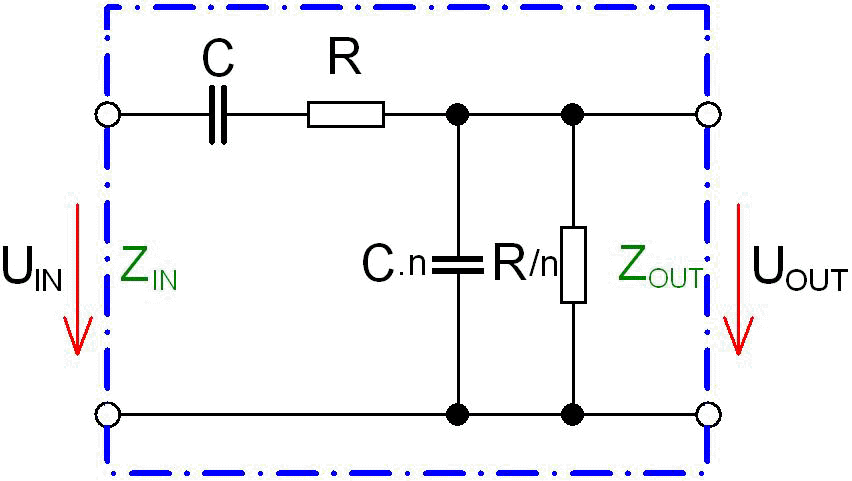 ![]() Jestliže n-násobek je roven 1 ( n = 1 ), oba rezistory mají stejný odpor a kondenzátory stejnou kapacitu. Tento stav se považuje za nejoptimálnější. Oproti jednoduchým RC členům dochází při mezním kmitočtu k většímu poklesu zisku - cca na 1/3 vstupního napětí, tj. AU = -9,5 dB. Fázový posun je v tomto okamžiku 0°. Šířku pásma „B“ určuje pokles zisku o -3 dB. Dále se přenos zmenšuje o -20 dB / dekádu. Body, které vyznačují přenos AU = -3 dB, určují šířku pásma členu B. Úpravu přenosu lze provést změnou hodnot označených součástek n-násobkem. Lze zmenšit pokles zisku při mezním kmitočtu, ovšem za cenu rozšíření pásma filtru. Zúžení pásma je zase "zaplaceno" vysokým úbytkem zisku. Vztah pro určení mezního kmitočtu pro danou propust je stejný: 1 fM = —————— 2 . π . R . C Výpočet šířky pásma: B = (2 + n-1) . fM Pro kmitočty nižší než fM se Wienův článek projevuje jako horní propust - výstupní napětí předbíhá vstupní. Se zvyšováním kmitočtu se fázový posun se zmenšuje a blíží se k 0°. V této fázi má úhel φ kladnou hodnotu ( až 90° ). Při mezním kmitočtu je výstup a vstup ve fázi (φ = 0°). Při kmitočtech vyšších než fM se článek chová jako dolní propust – výstupní napětí se za vstupním zpožďuje. Při dalším zvyšováním kmitočtu se fázový posun zvětšuje. V této fázi bude mít úhel φ zápornou hodnotu (až -90°). |